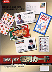 普通サイズの名刺 1 シート 10 枚で 100 枚分をセット。写真を使ったオリジナル名刺が簡単につくれます。ミシン目も入っていて切り取りもハサミ要らず。両面に特殊表面層を設けてあり、表裏とも鮮やかに印字できます。名刺以外にも、名札や店頭でのプライスカードなど、多彩な用途に利用できます。